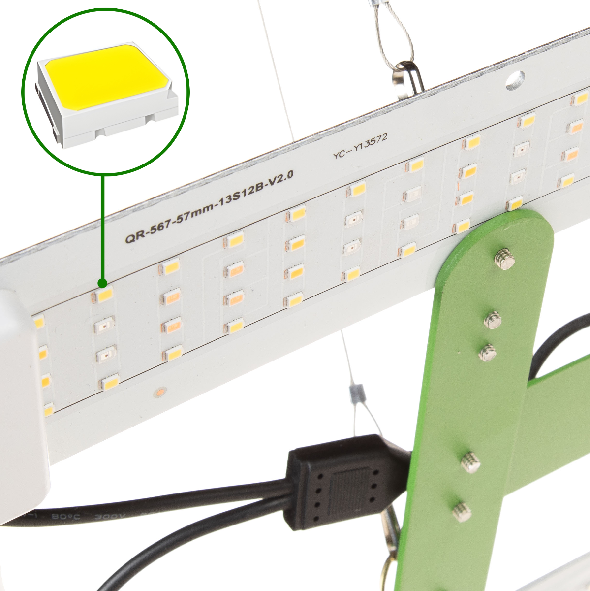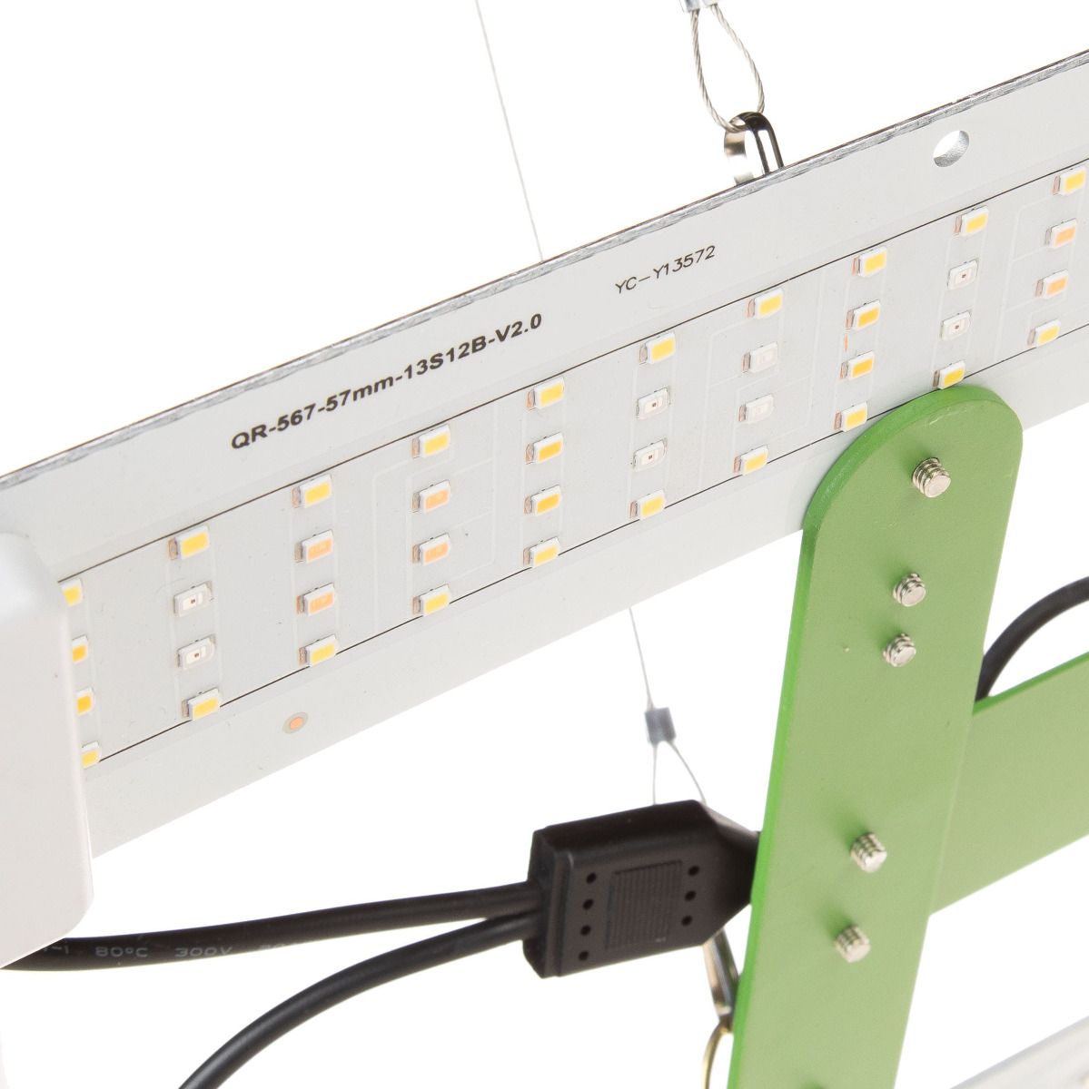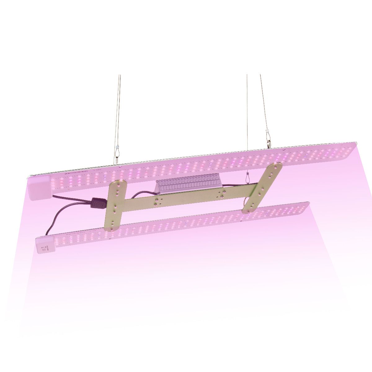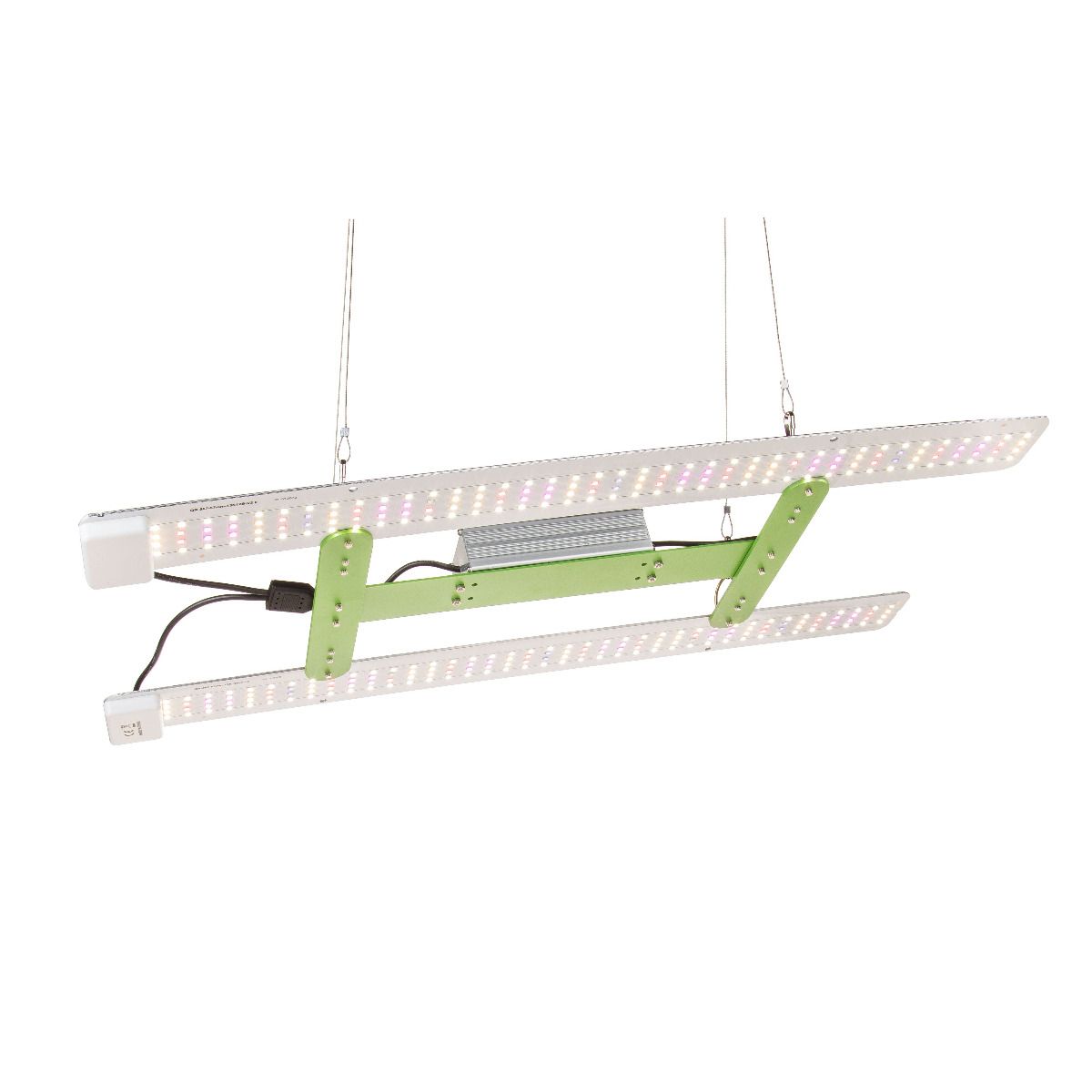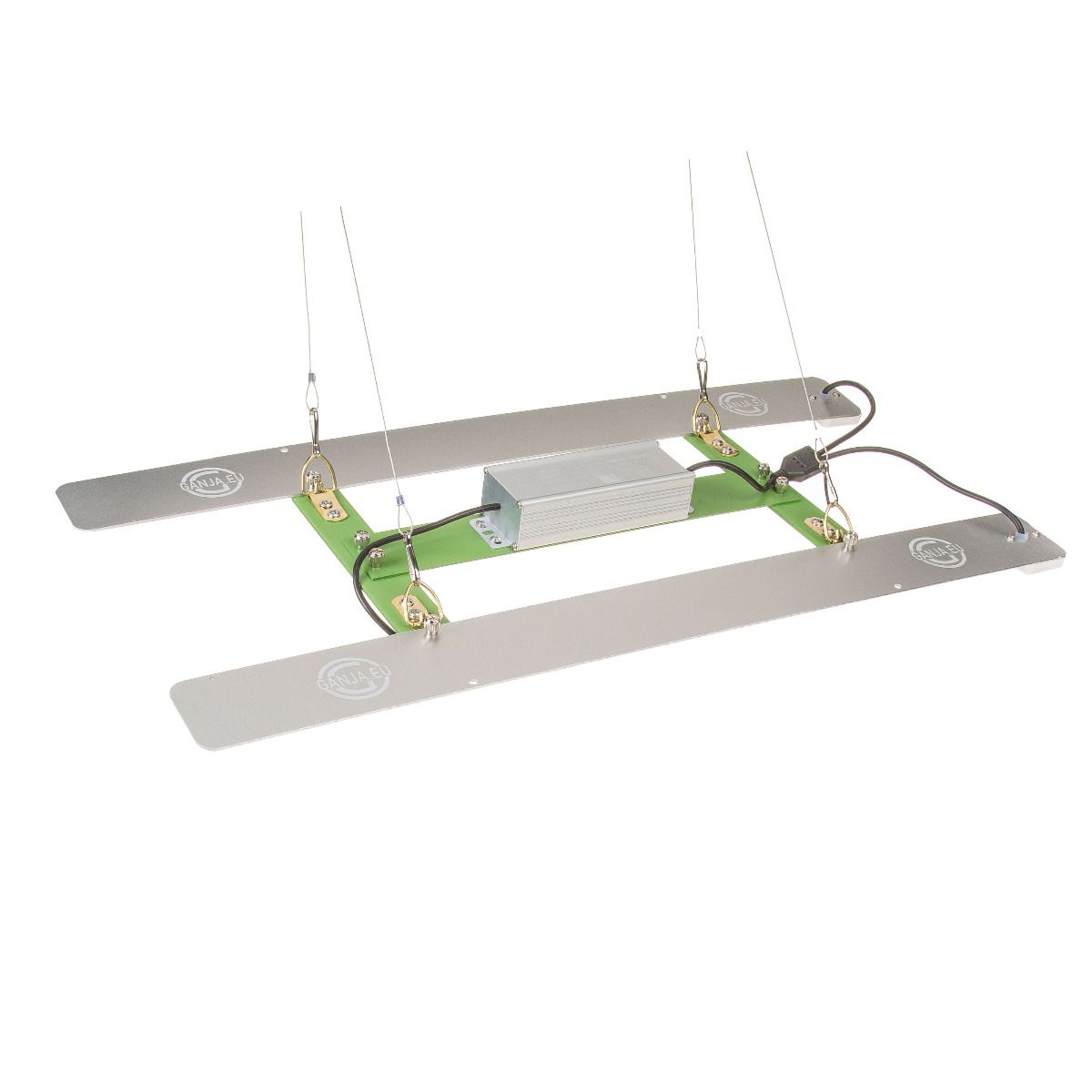 Our lights come with steel cables that connect at one point to a fabric cable, which in turn is equipped with a quick suspension height adjustment system. This allows you to quickly select the appropriate suspension height for your plant's current growth stage.