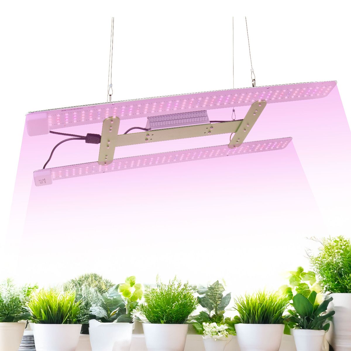 - Easy assembly: Compact design and a full set of mounting elements allow for easy hanging of the lamp in various growing spaces.